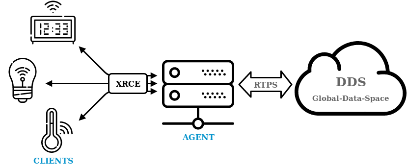 - XRCE Agent. Central part of the protocol providing the required DDS access to the XRCE Clients mentioned above.