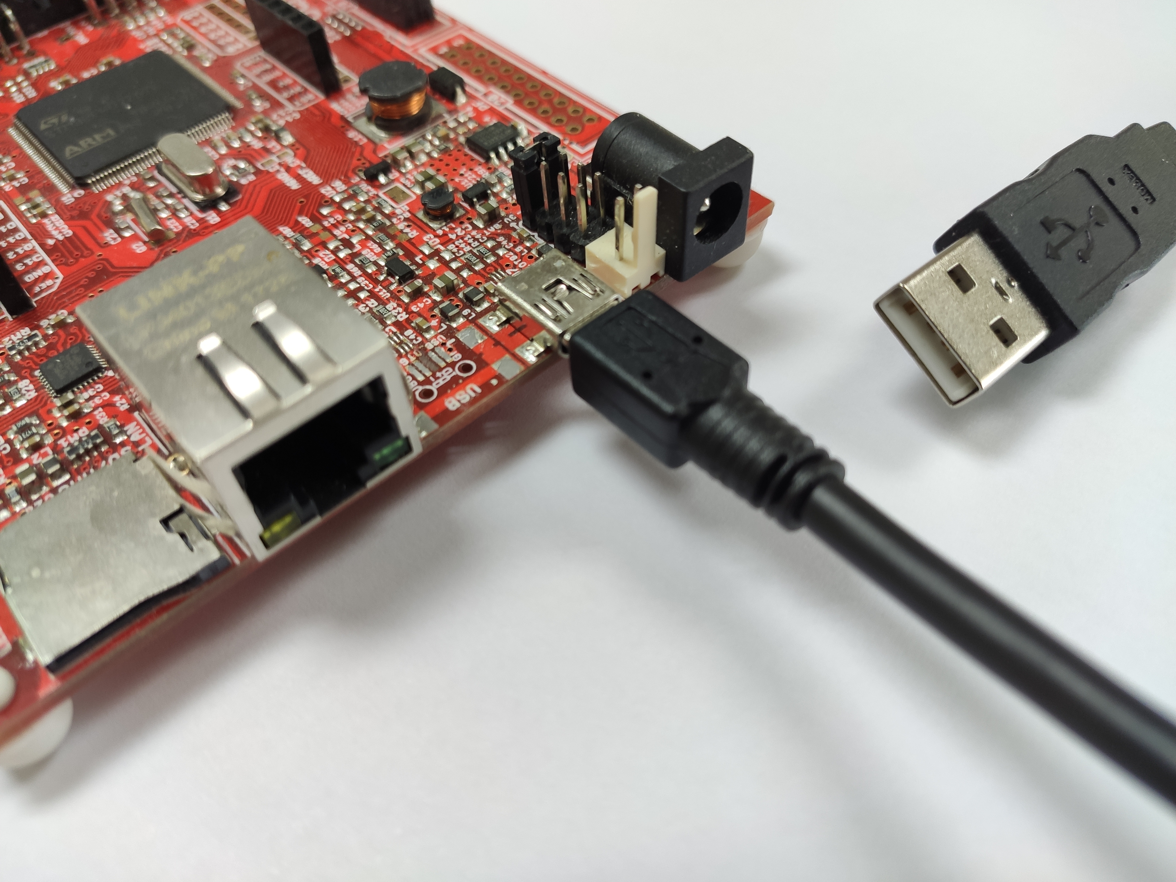 Then, depending on the selected transport and RTOS, the board connection to the agent may differ. In this tutorial, we’re using the Olimex STM32-E407 USB connection, for which the Olimex development board is connected to the computer using the USB OTG 2 connector (the miniUSB connector that is furthest from the Ethernet port).